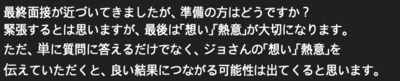 그리고 가능한 인사담당자에게 질문은 많이 하세요. 그럼 신경을 더 써줍니다. 민폐가 아닐까 라고 생각 될수 도 있지만, 그만큼 우리 회사에 관심이 많구나라고 어필이 됩니다. 저같은 경우는 다음 과 같은 답변도 받았습니다.