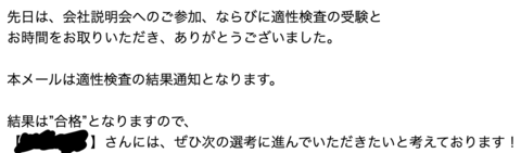내정은 생각보다 빨리 나왔습니다. 그 다음날 바로 점심쯤에 전화와서 내정됬고, 귀국하기전에 알려줄수 있었서 다행이다. 내정통지서랑 승낙서 보낼테니 싸인해서 보내줘, 메일로 다시한번 보낼게라고 연락왔고, 그당시 친구가 알바하는 우메다 산마르크에서 기뻐서 엄청 큰 소리를 내버렸네요. 그 후, 다음과 같이 피드백이랑 내정 축하메일이 왔네요.